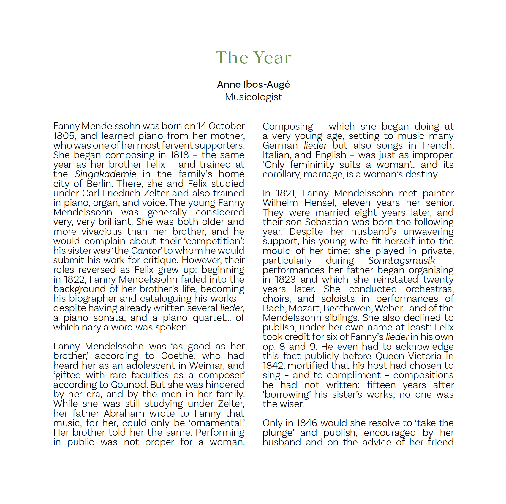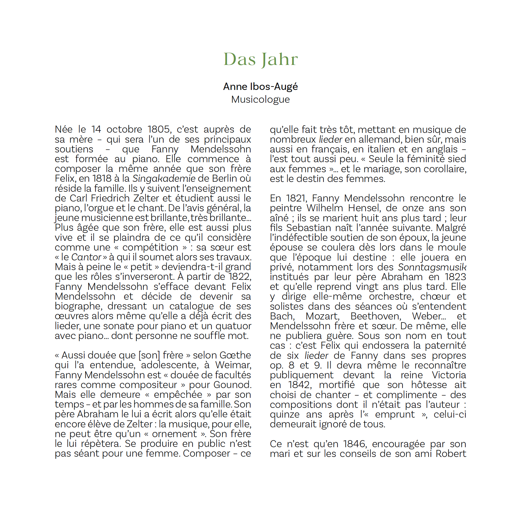 FANNY MENDELSSOHN (1805-1847)