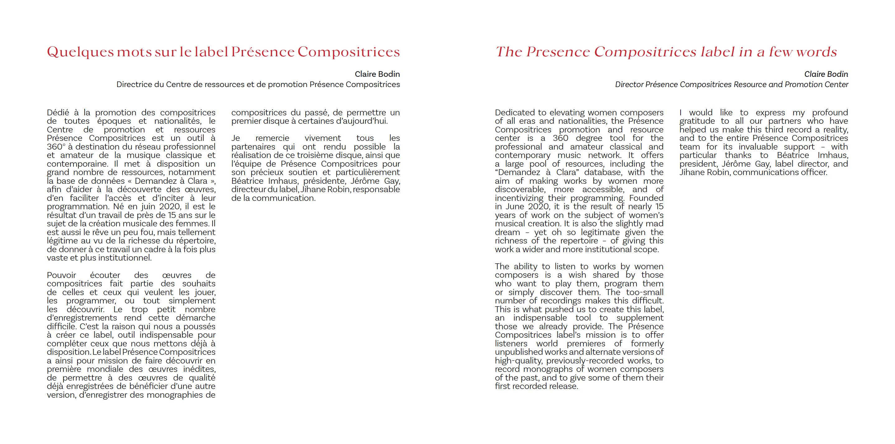 Pour la musique de chambre, elle remporte le prix Présence Compositrices au concours international de Marmande, qui lui permet d’enregistrer ce disque.